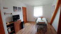K dispozici jsou dva pokoje, kuchyňská linka (2 varné plotýnky, mikrovlnka, lednice, rychlovarná konvice) s jídelním koutem a sociálním zařízením (WC + sprchový kout). Součástí je wi-fi.